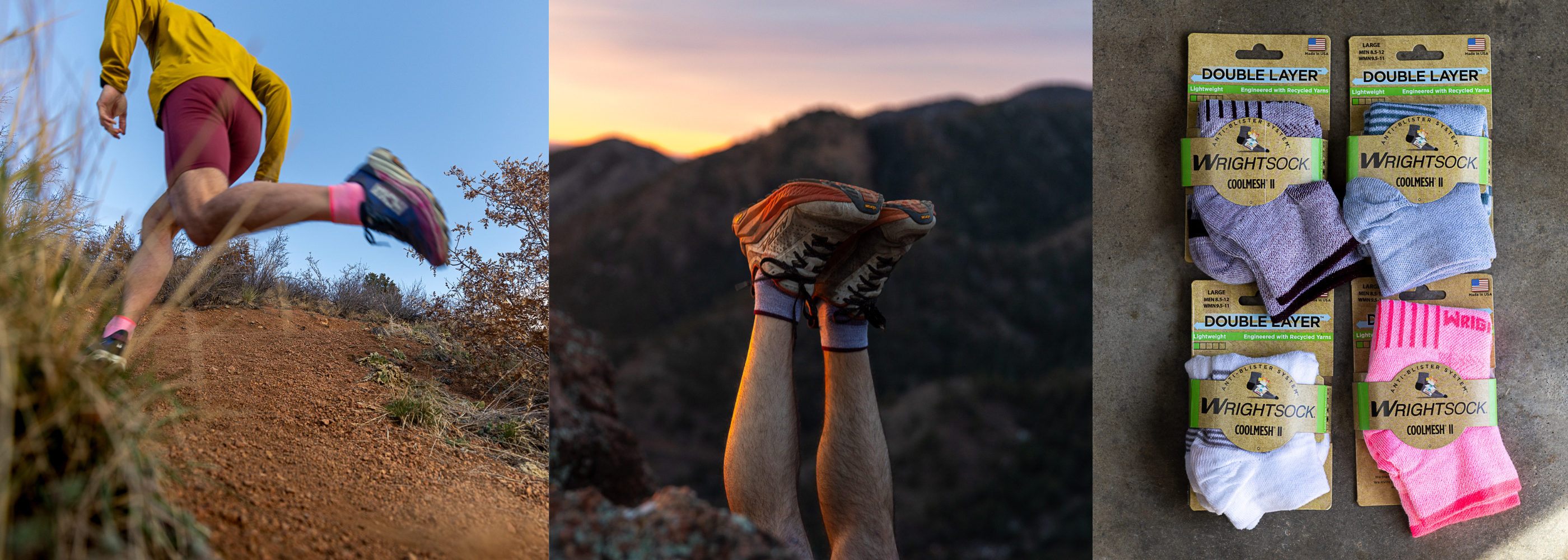 Whether you’re looking minimal-feel anti-blister tab running socks, crew anti-blister military socks, or over-the-calf hiking socks, we have the CoolMesh II selections for you. Review the selections below to discover our wide array of CoolMesh II designs and styles. Try out our CoolMesh II bundle packs to save!