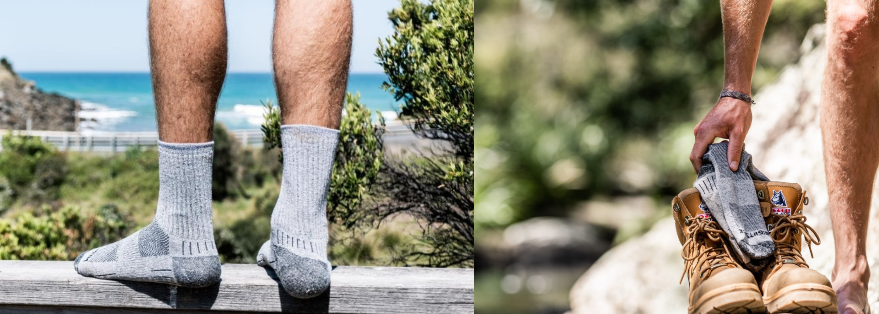 Double-layer design: All of the socks in our Escape Collection feature a double-layer design to protect our customers from blisters. The inner layer of the sock acts as a second skin and is made with hydrophobic yarn. As you move, the inner layer wicks away moisture, which helps reduce excess heat on your skin, while the outer layer interacts with the inner layer to absorb friction. The addition of a lightly cushioned footbed in the inner layer also improves comfort on long hikes.
